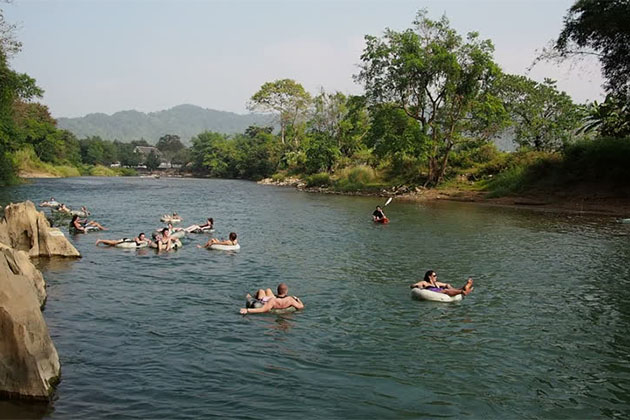 - Don’t dive into the river: Nothing can sure that tubing at Nam Song river is 100% safe. There are numerous rocks in the river and you may be in danger at any times. It is fun enough to stay on the tube.